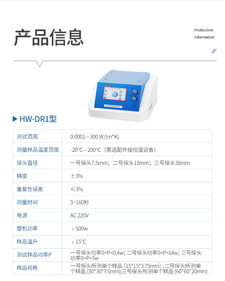 | 15 | 样品尺寸 | 300mm×300 mm×(5-50 mm) |