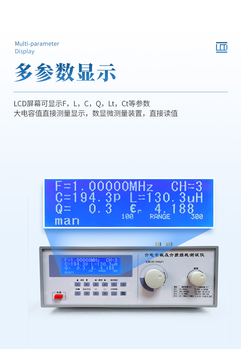 | 13 | LCD显示参数 | F,L,C,Q,Lt,Ct等 |