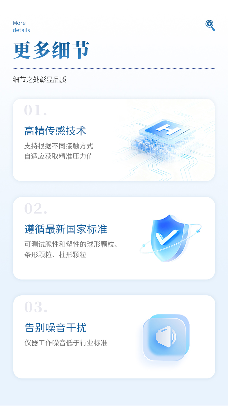 6、严格遵循最新国家标准,可测试脆性和塑性的球形颗粒、条形颗粒、柱形颗粒;