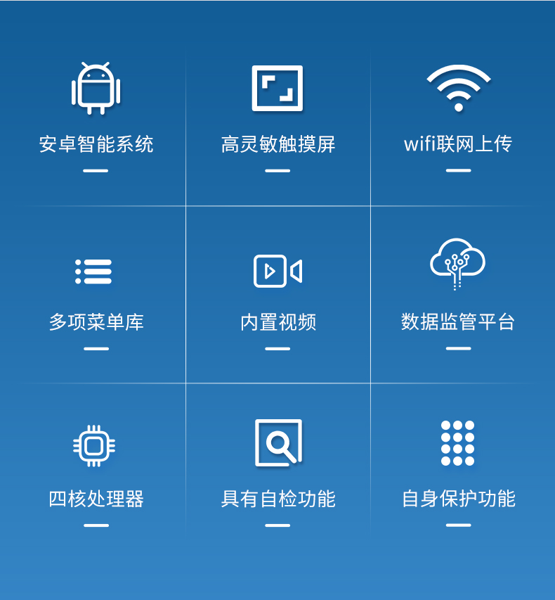 1、安卓智能操作系统,采用更加高效和人性化操作,仪器具有网线连接、wifi联网上传、GPRS无线远传功能,快速上传数据。