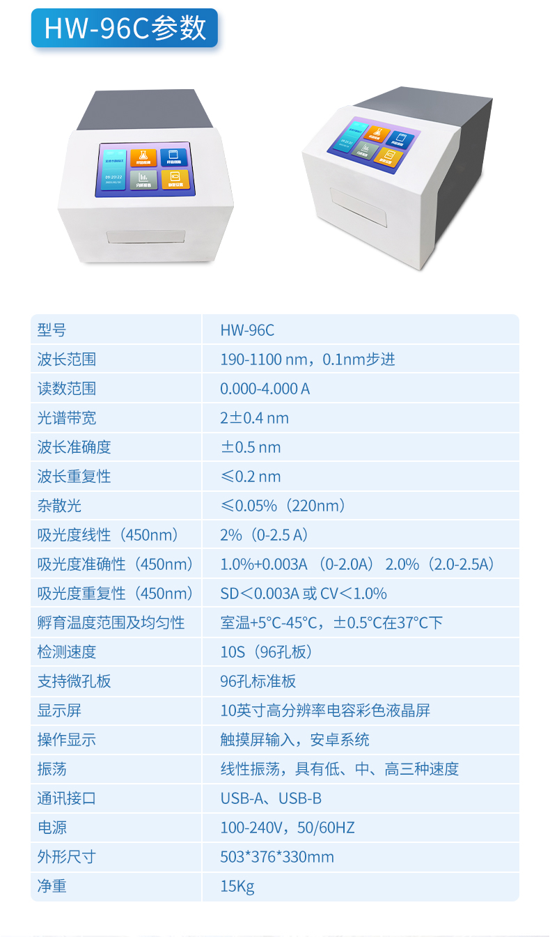 读板速度:单波长≤3秒/96孔,双波长≤6秒/96孔