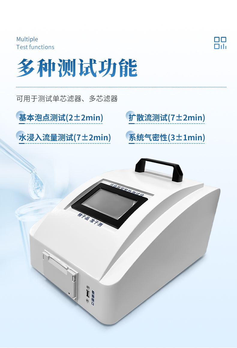 多功能化:可用于测试单芯滤器、多芯滤器,多种测试功能;