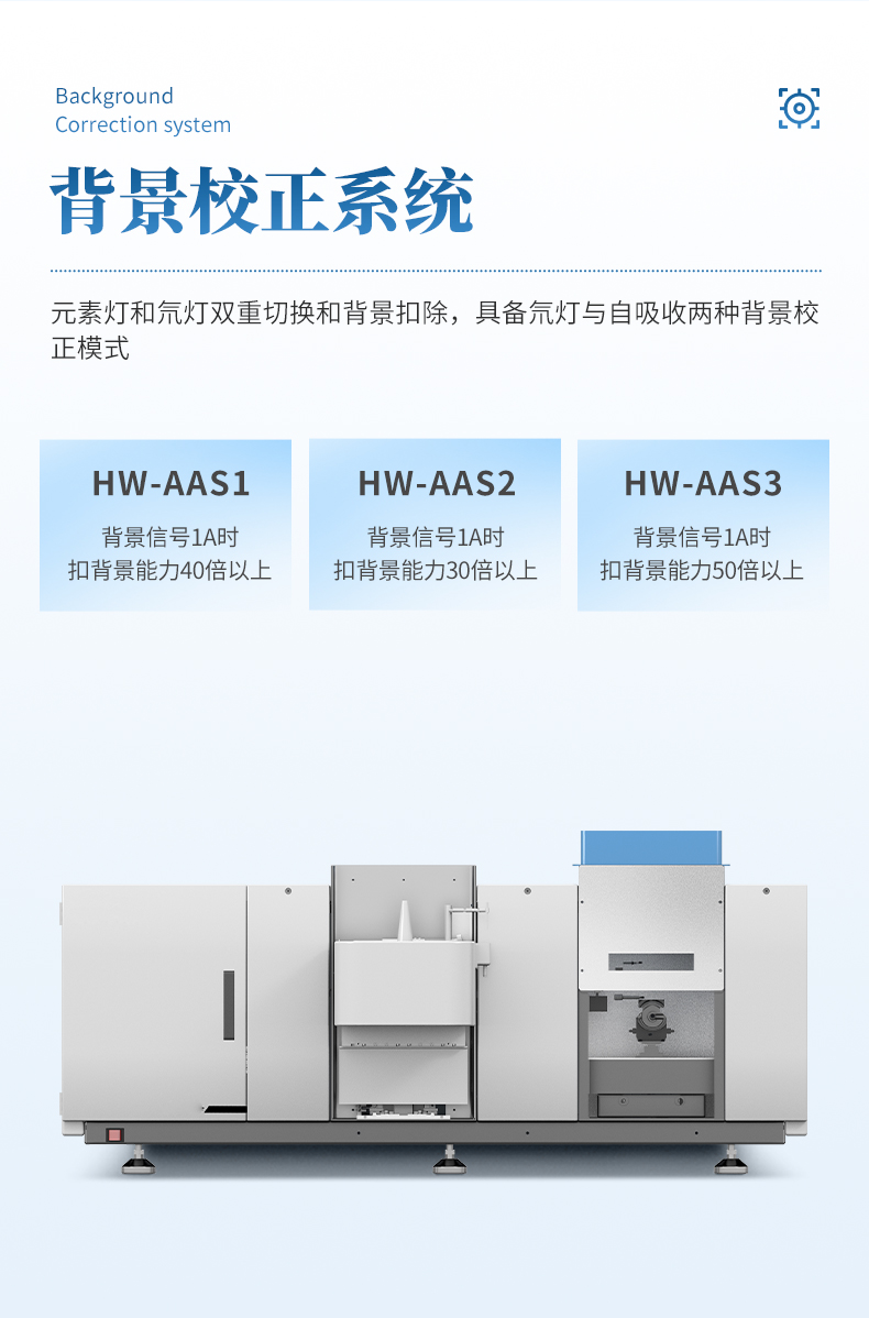具备氘灯与自吸收两种背景校正模式,背景信号 1A 时,扣背景能力 40 倍以上。