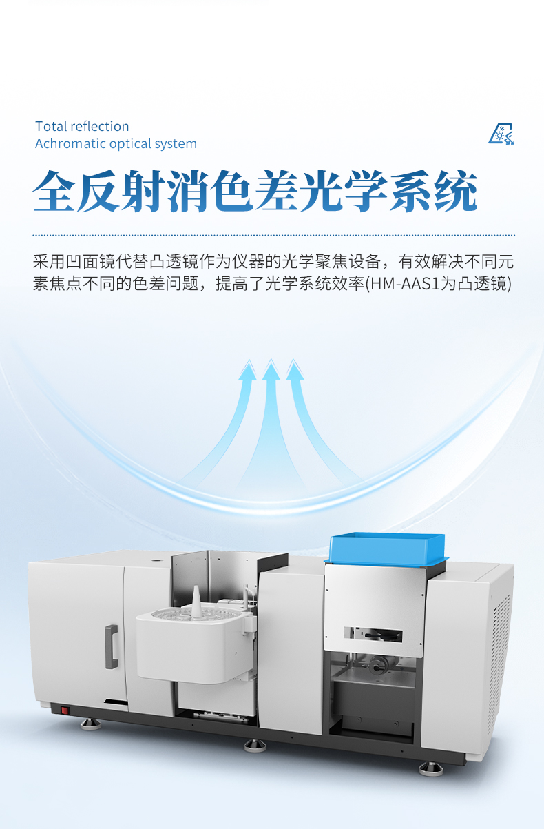 单石墨炉原子吸收分光光度计采用凹面镜代替凸透镜,有效解决了不同元素聚焦点不同产生的色差问题,提高了光学转换效率。