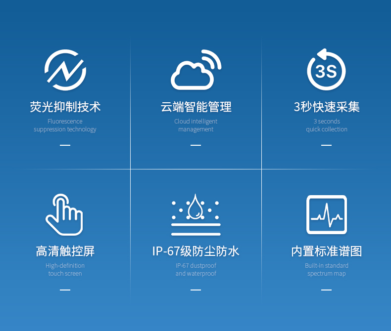 云端架构:配有云端服务,检测数据可无线上传实现长短期动态分析与管理;可通过云端更新仪器数据模型;支持云端数据检索、识别;可将平台私有化部署,提供平台现有数据库;