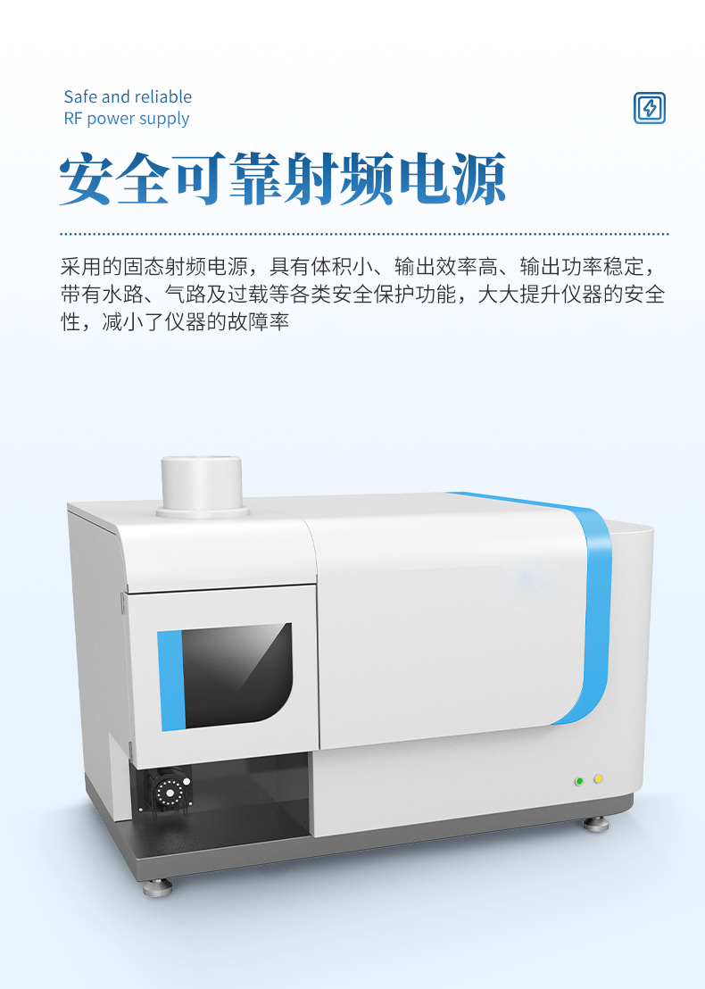 1、安全可靠的固态射频电源:仪器采用的射频电源,具有体积小、输出效率高、输出功率稳定,带有水路、 气路及过载等各类安全保护功能,大大提升仪器的安全性,减小了仪器的故障率。