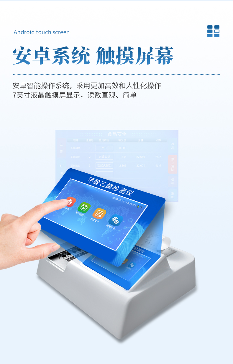 2、显示方式:7英寸液晶触摸屏显示,人性化中文操作界面,读数直观、简单。