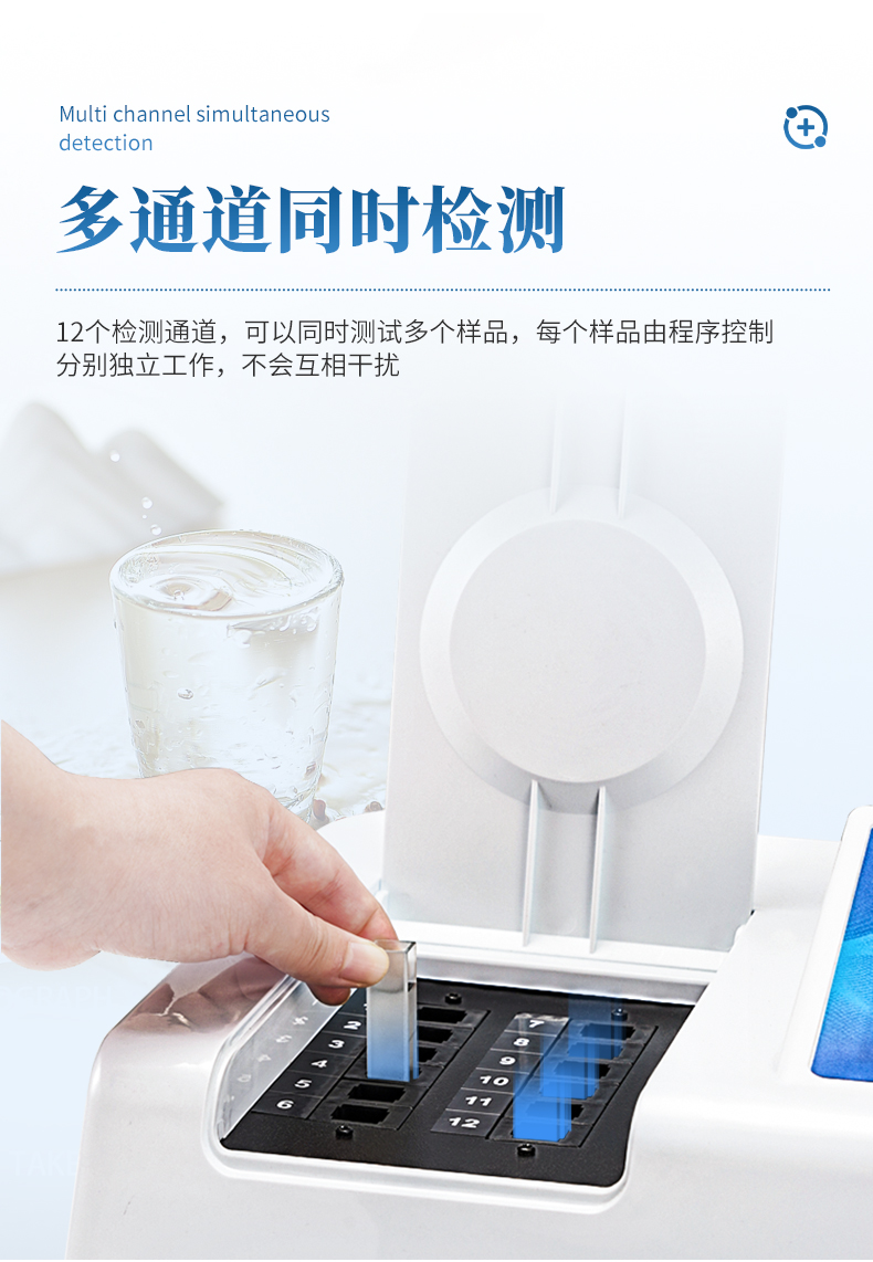3、检测通道:≥12个检测通道,可以同时测试多个样品,每个样品由程序控制分别独立工作,不会互相干扰。