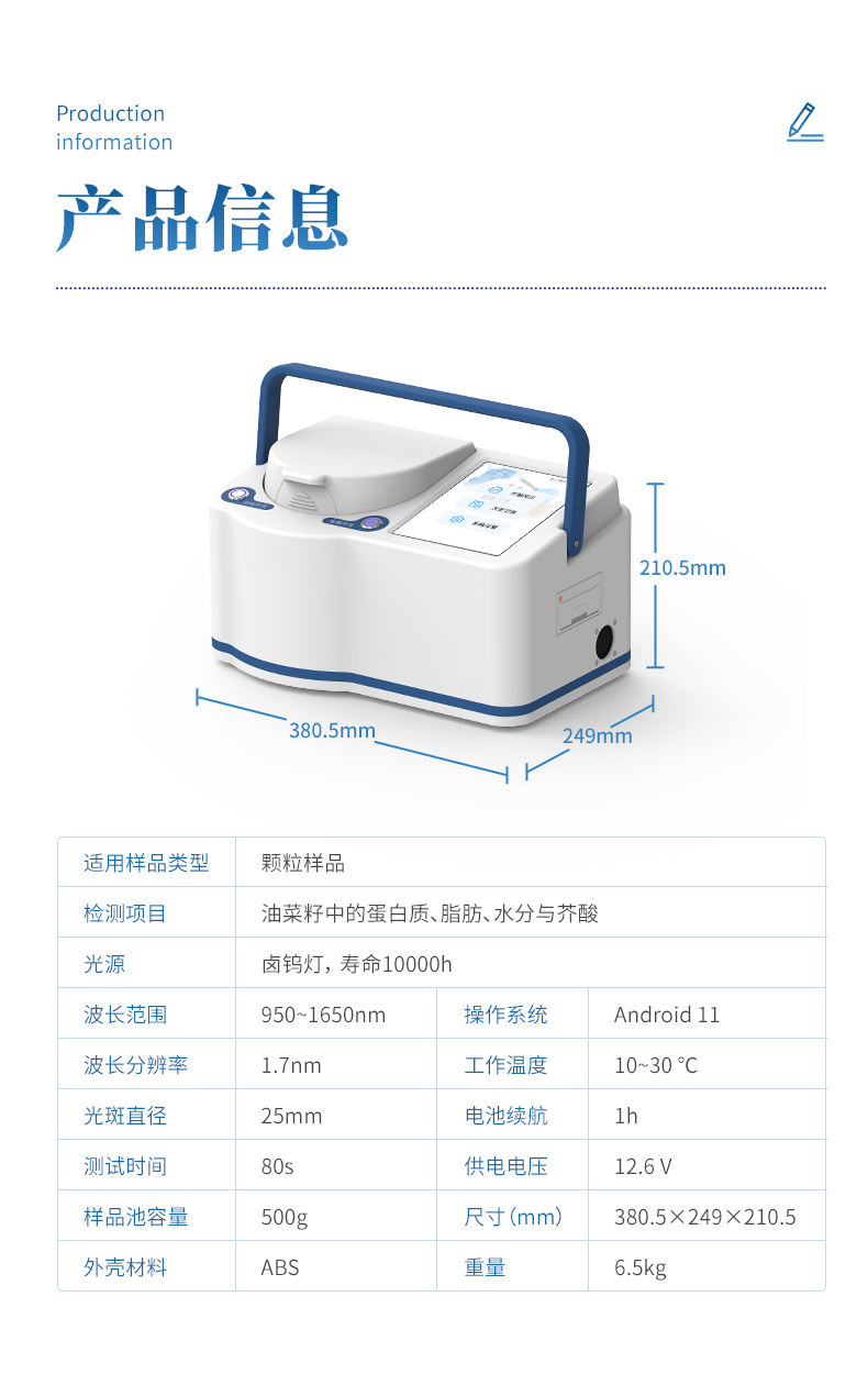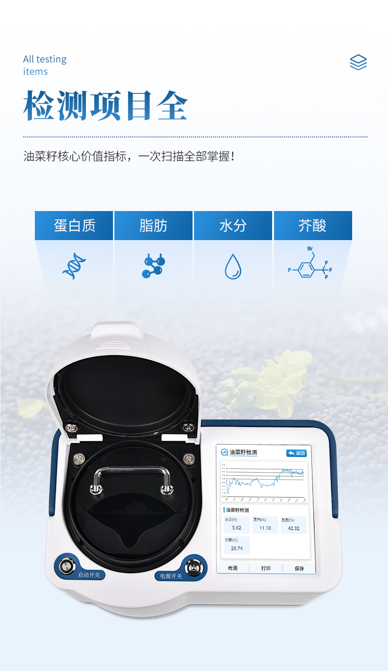2.检测项目全:油菜籽中的蛋白质、脂肪、水分与芥酸;