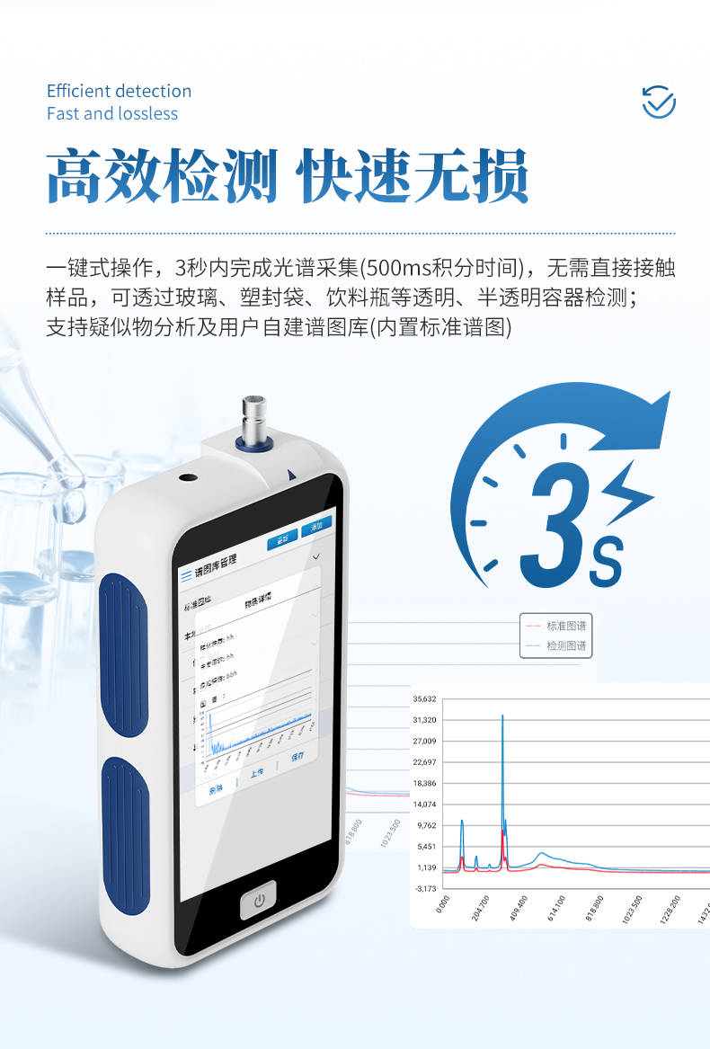 高效非接触检测:可在数秒内完成光谱采集,支持透过透明或半透明包装直接检测,减少样品前处理环节。