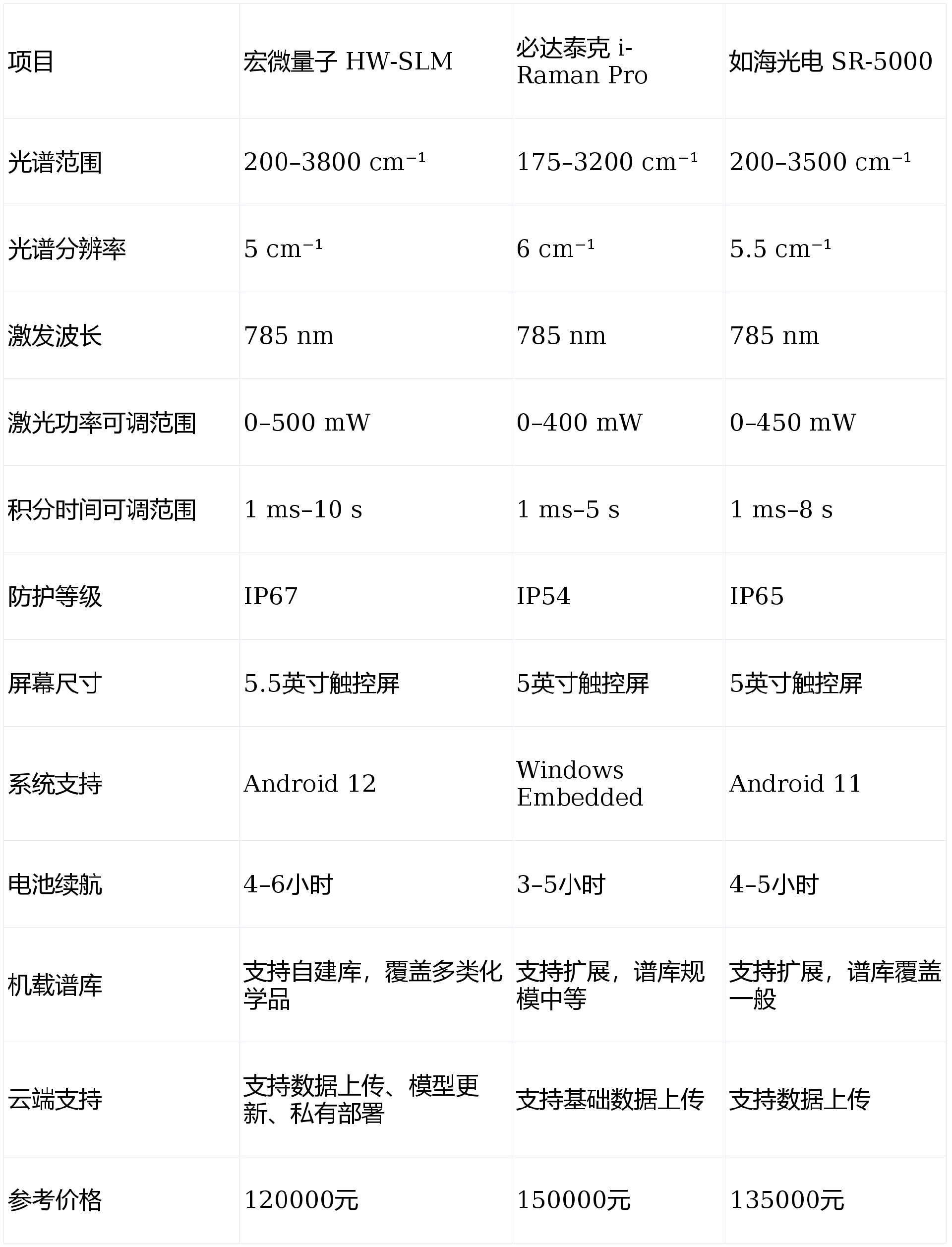 本次测评选取宏微量子HW-SLM型号(定价120000元)作为主要评测对象,并与市场中国际知名品牌必达泰克(型号:B&W Tek i-Raman Pro,定价约150000元)、如海光电(型号:SR-5000,定价约135000元)的同级别产品进行对比。测评围绕技术参数、核心功能、适用场景及价格成本四个维度展开,旨在评估各型号在性能与价格之间的平衡表现,为用户选型提供参考。