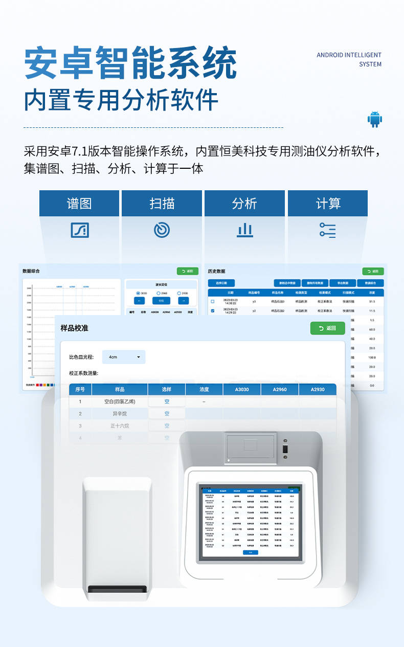 安卓智能操作系统:内置专用分析软件,支持谱图扫描、数据计算、历史查询等功能,操作便捷。