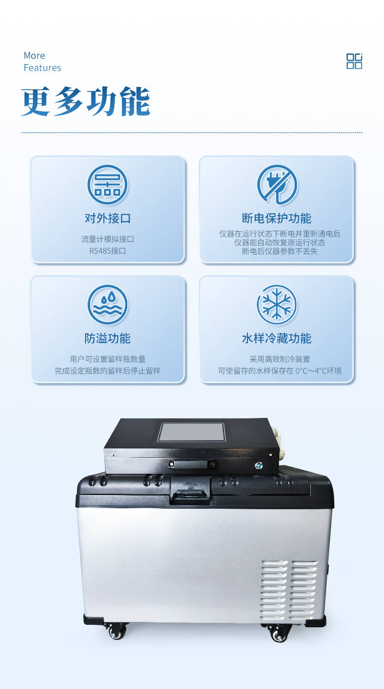 分瓶留样功能:支持 1~12 瓶自由设定,满足多时段、多点位采样需求;