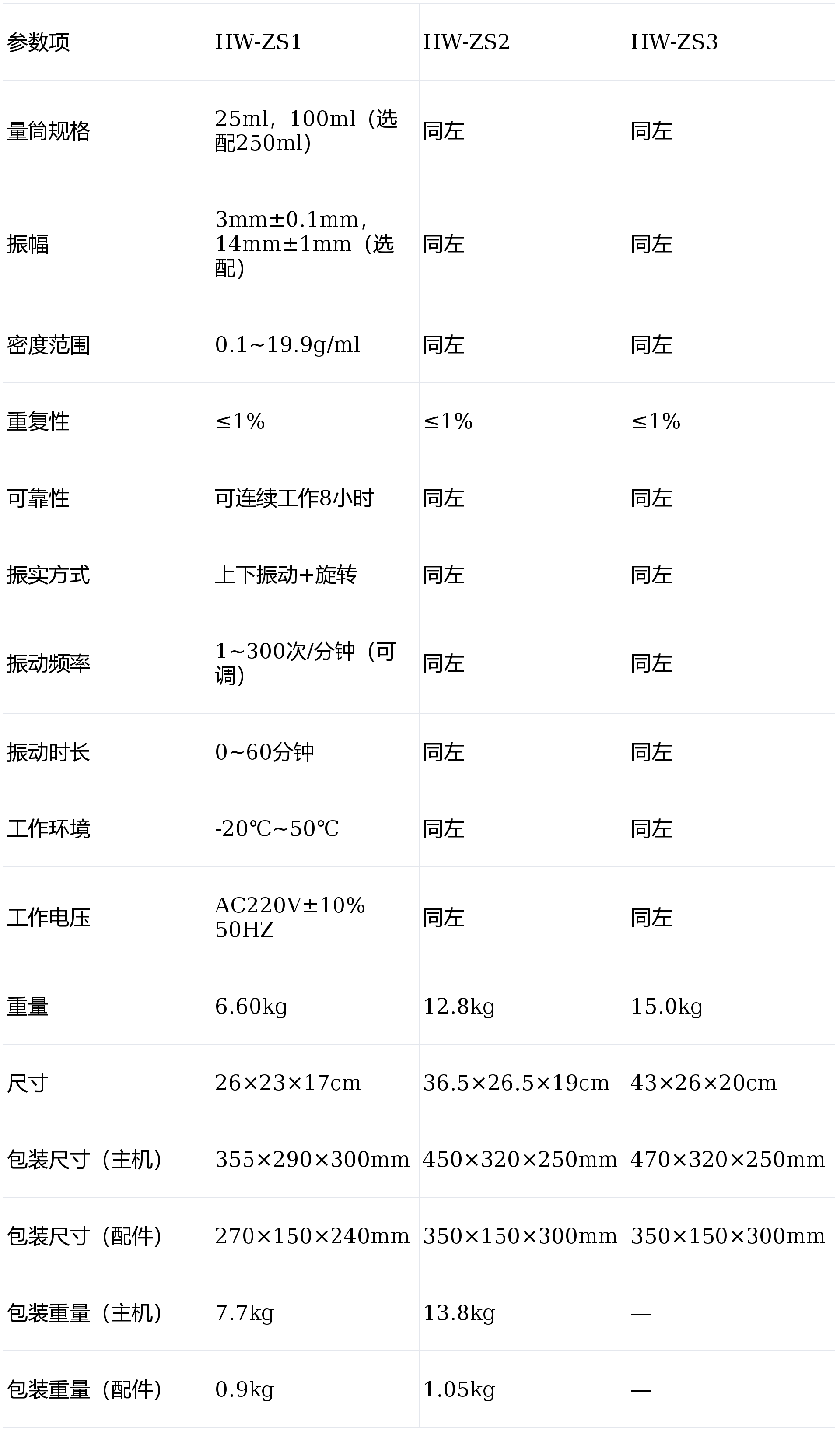 宏微智造振实密度仪系列产品包括HW-ZS1、HW-ZS2、HW-ZS3三款型号,均采用高精度振动控制技术与智能化操作系统,广泛应用于粉末材料振实密度的测定。系列产品在结构设计、振动方式、数据处理等方面持续优化,满足不同用户在多场景下的检测需求。