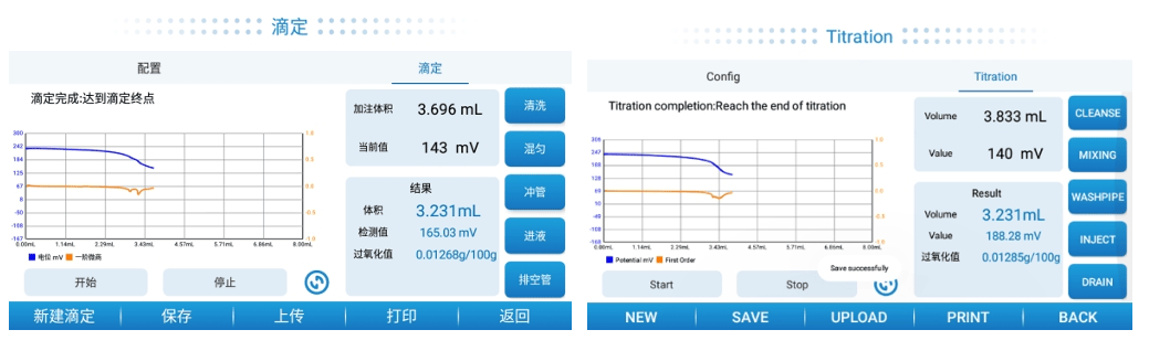 智能终点判断:不受样品颜色、浊度影响,尤其适合颜色较深的牛油。