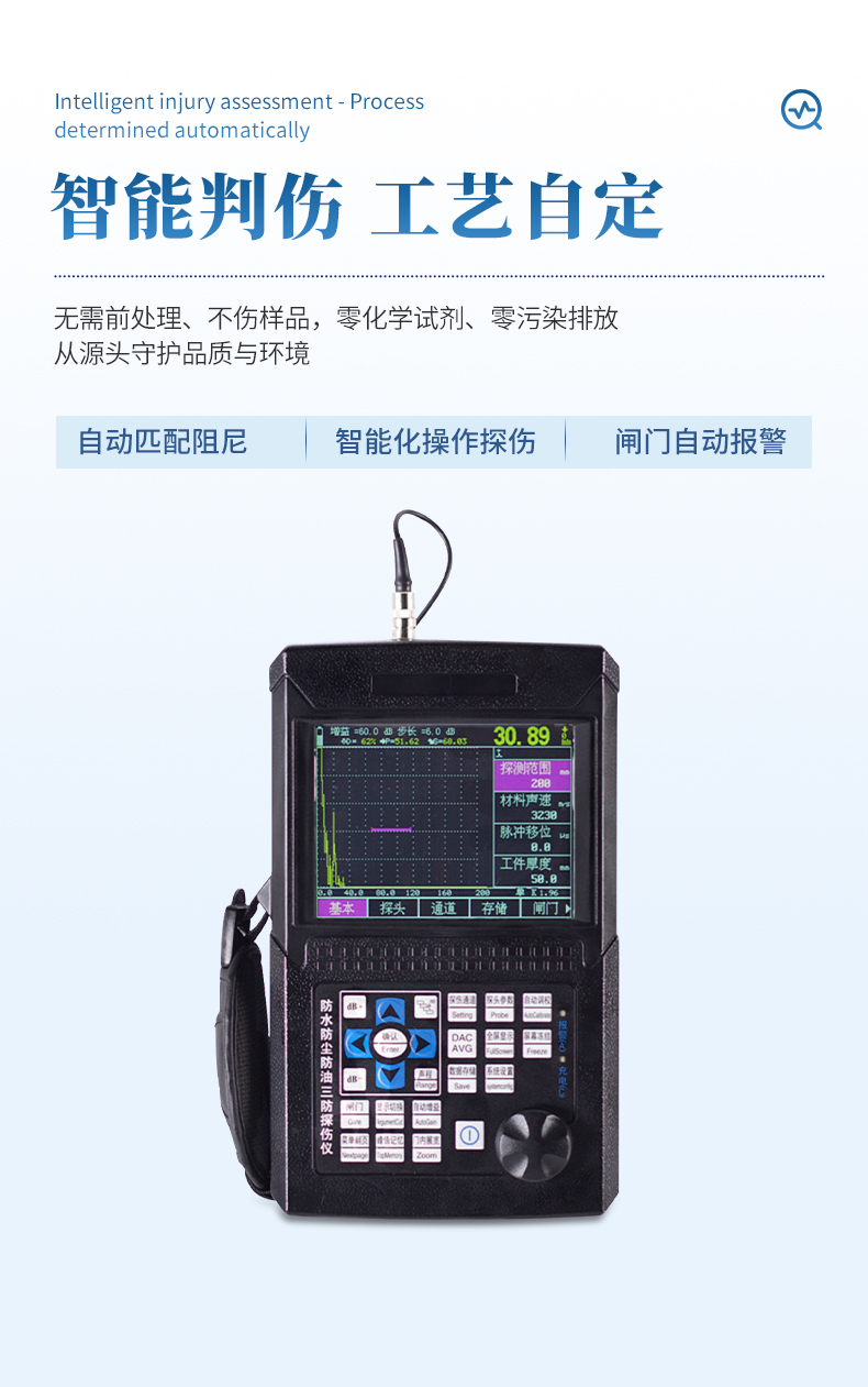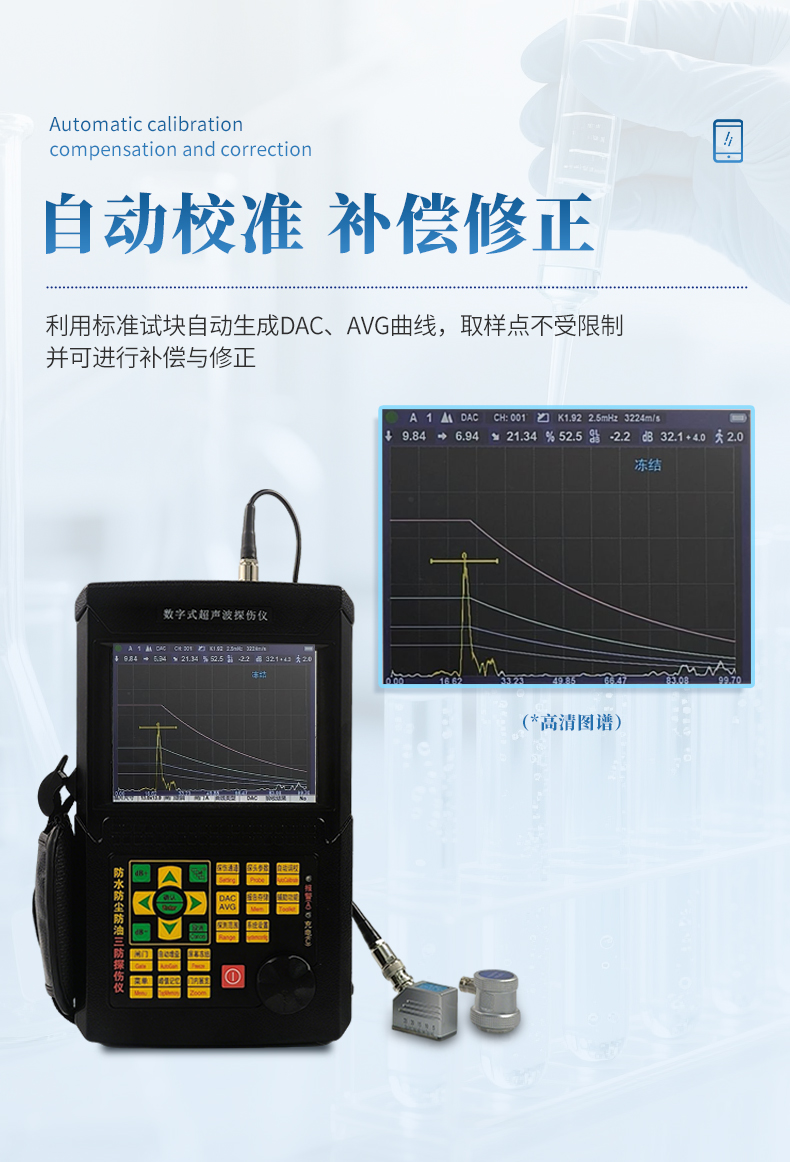 3、自动校准:一键式自动校准,操作便捷,自动测试探头的“零点”、“K值”、“前沿”及材料的“声速”;