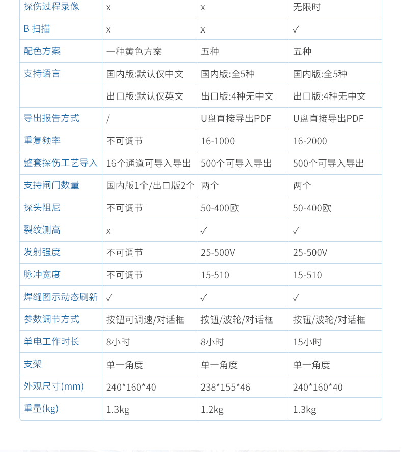 | 整套探伤工艺导入 | 16个通道可导入导出 | 500个可导入导出 | 500个可导入导出 |