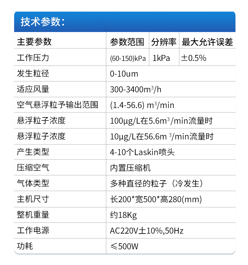 | 空气悬浮粒子输出范围 | (1.4-56.6)m3/min | ||