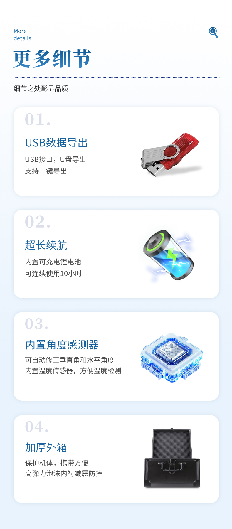9.内置角度感测器,可以自动修正垂直角和水平角度;