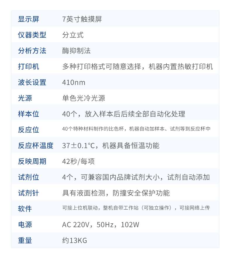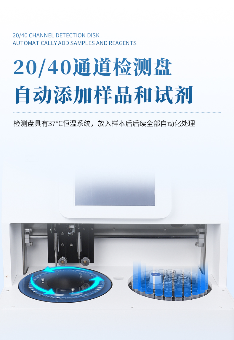 检测盘:40通道检测盘,比色皿容量500uL,检测盘具有37℃恒温系统