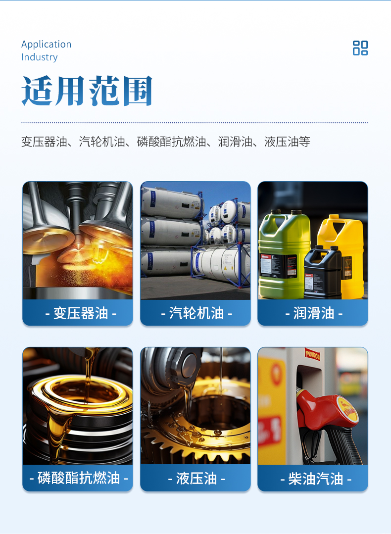 8、适用油样:变压器油、汽轮机油、磷酸酯抗燃油、润滑油等