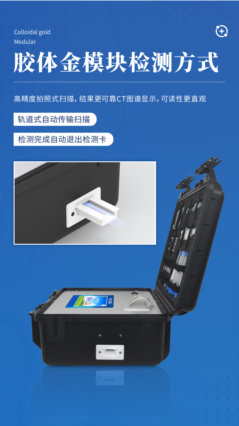 胶体金模块检测方式:轨道式自动传输扫描,检测完成后自动退出试纸。