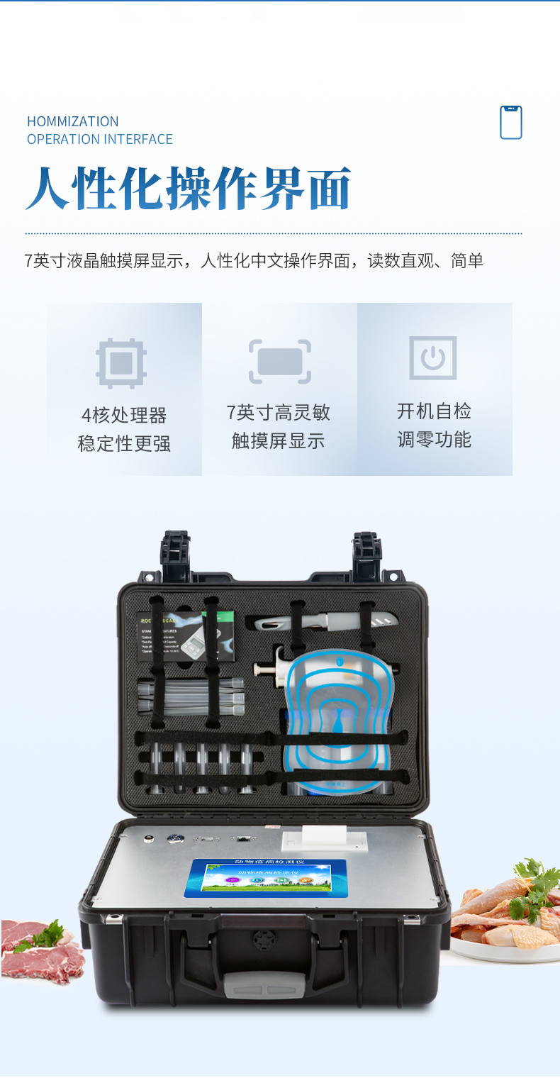2、显示方式:7英寸液晶触摸屏显示,人性化中文操作界面,读数直观、简单。