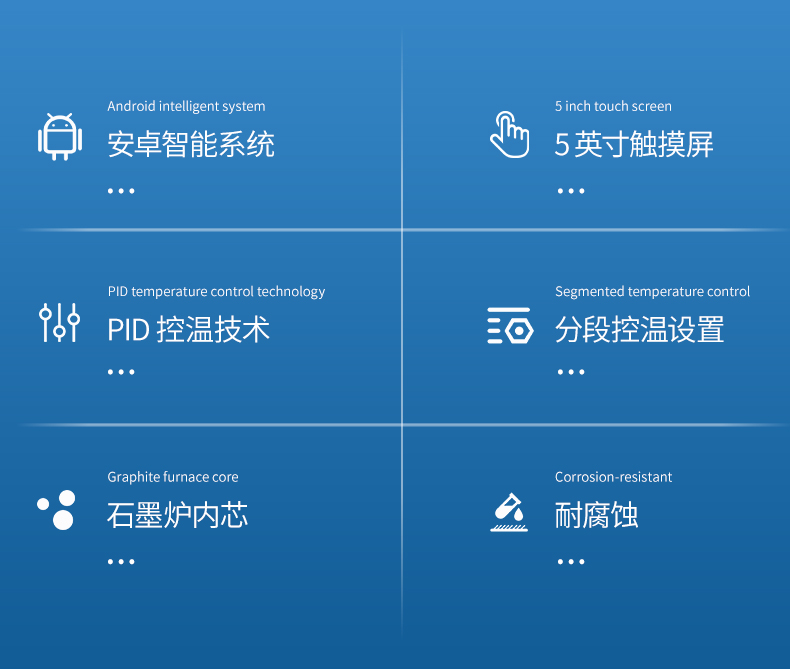 分段控温设置,即可单段升温,也可多段升温,设置灵活,仪器将自动按顺序完成。更适于易产生泡沫的样品。