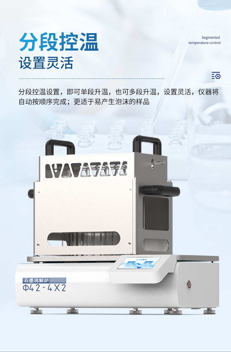 分段控温设置,即可单段升温,也可多段升温,设置灵活,仪器将自动按顺序完成。更适于易产生泡沫的样品。