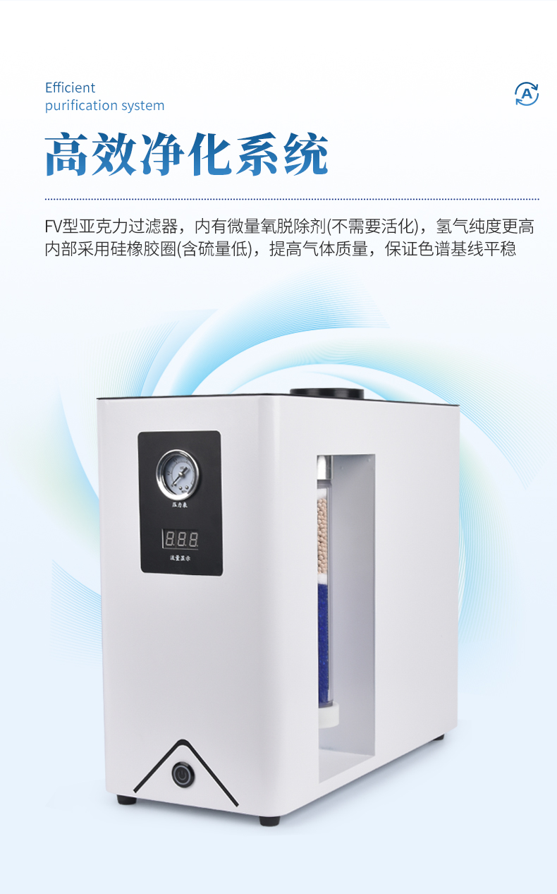 2、FV型亚克力过滤器,内有微量氧脱除剂(不需要活化),氢气纯度更高;仪器内部采用硅橡胶圈(含硫量低),有效提高气体质量,保证色谱基线平稳。