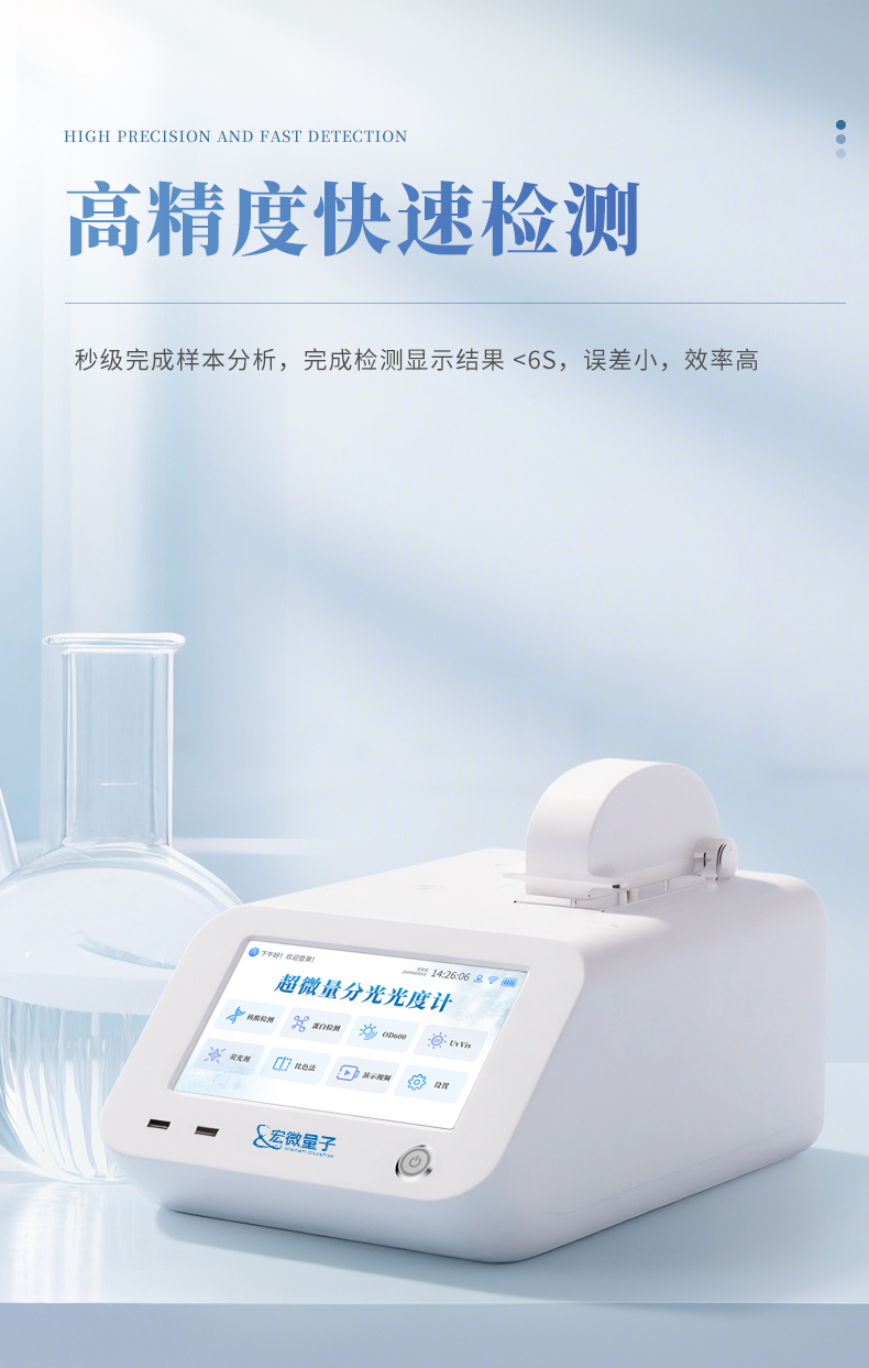 5、采用液柱表面张力技术,实现0.5-2μL极微量样品的快速检测,无需比色皿或毛细管,显著减少样本损耗;
