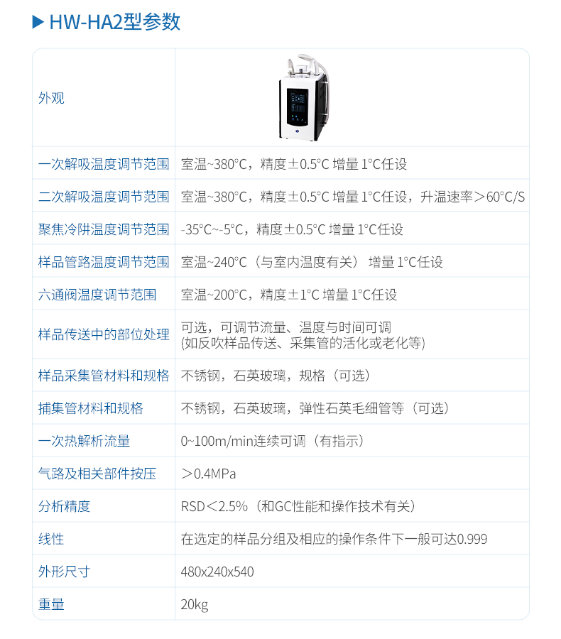 智能热解析仪是一种气相色谱分析的样品前处理装置, 它适用于环境空气中苯系物和 TVOC 的检测,与传统的热解析仪器不同,我们对整体设备进行了升级优化,融合了现代高科技进样技术,降低了人为因素对数据的干扰,提高了实验数据的重复性。