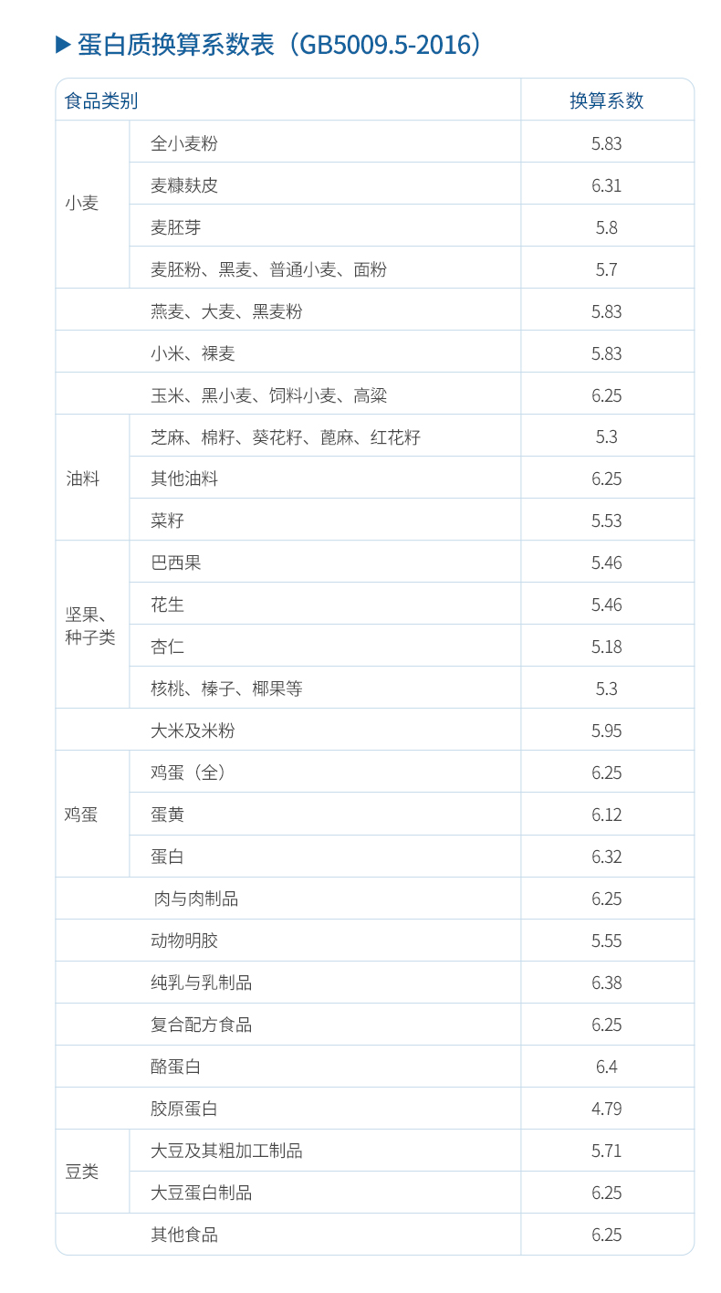 蛋白质换算系数表(GB5009.5-2016)