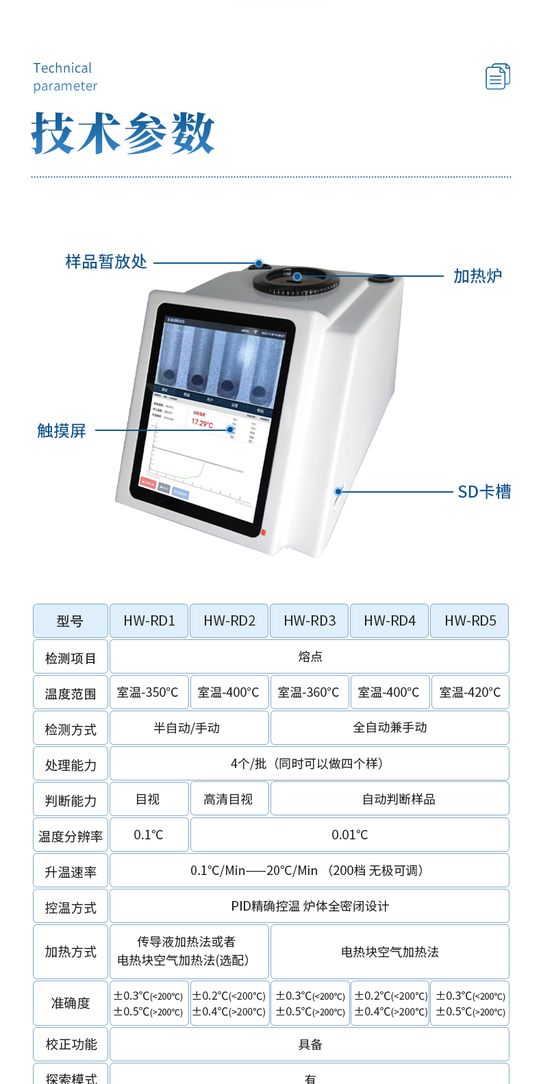 加热方式:传导液加热法或者电热块空气加热法(选配)