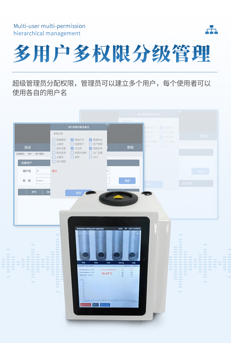可同时测定四个样品:升温一次最多放置4个样品,与传统测量方法相比工作效率提高4倍,且4组数据分别记录实现对历史数据的追溯,符合FDA21CFR11确保出具报告的可信度。