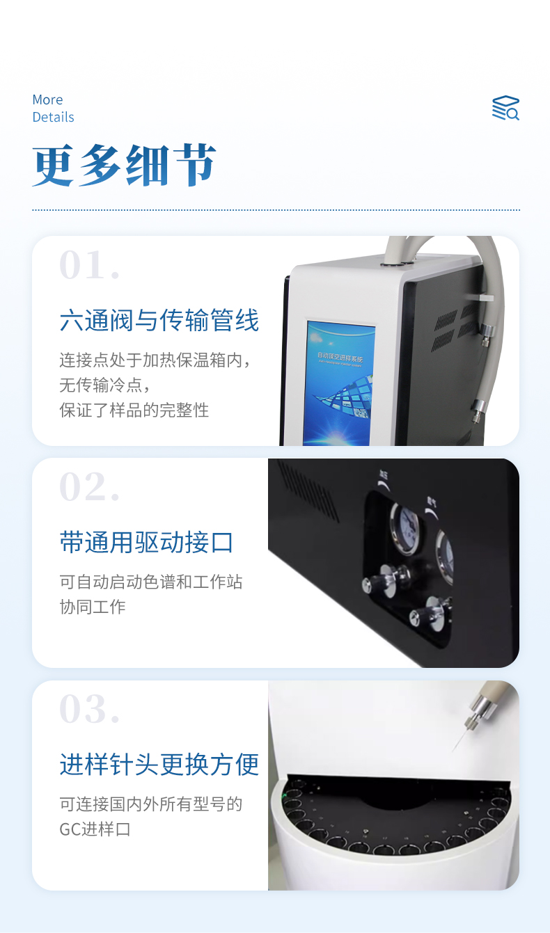 自动顶空进样器是一款带有六通阀定量环压力平衡进样并且拥有多个样品瓶容量的顶空进样装置。它具有通用性好、操作简单、分析结果重现性好等独特的技术特点,耐用的结构和简化的设计,几乎适用于任何环境下的连续操作。