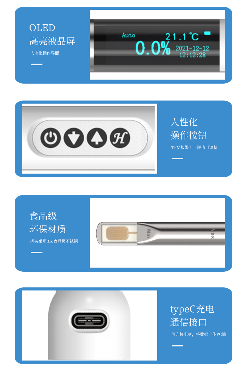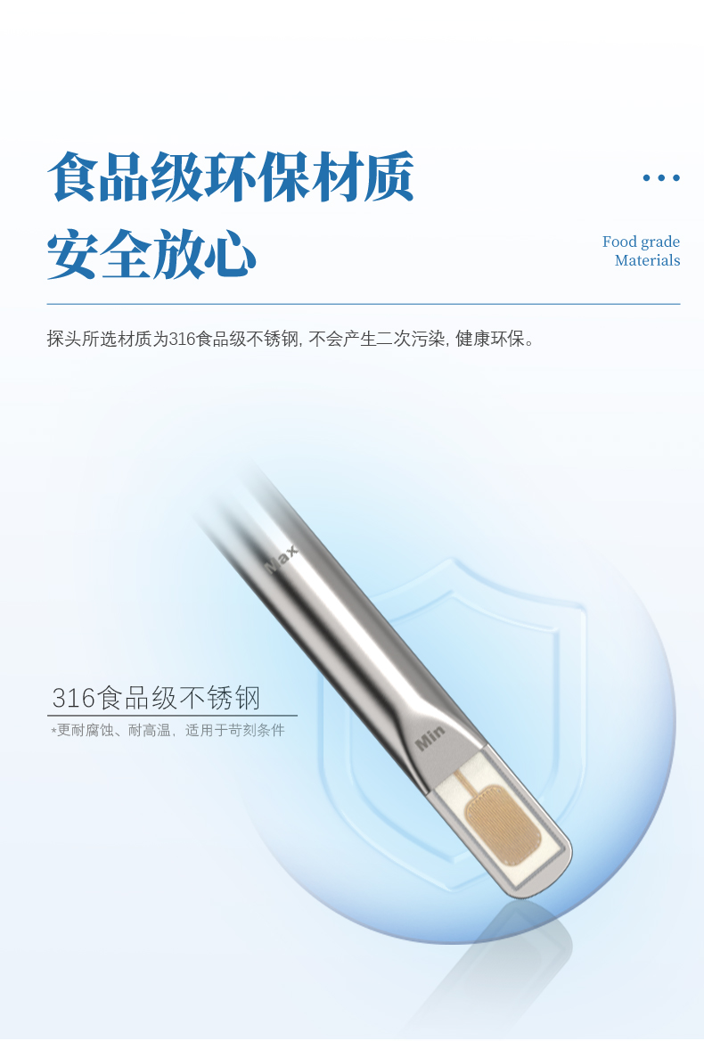 ■没有二次污染 探头所选材质均为食品级环保材质,不会产生二次污染。
