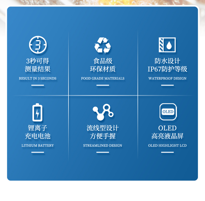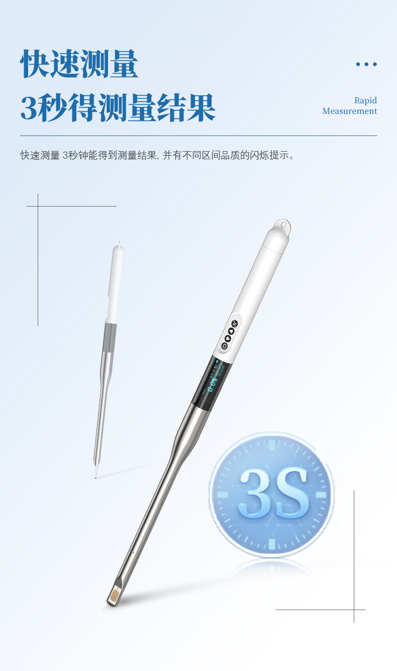 ■快速测量 3秒钟能得到测量结果,并有不同区间品质的闪烁提示。