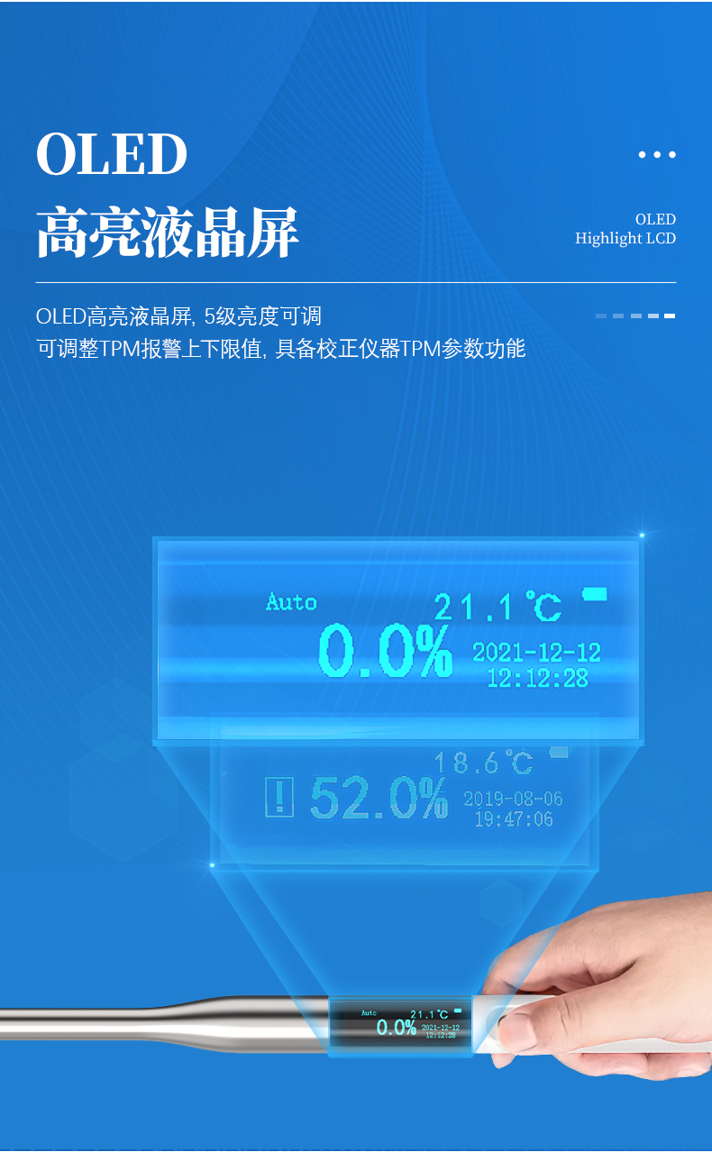 显示方式:OLED高亮液晶屏,5级亮度可调。