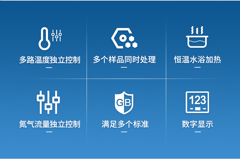 5、每个样品的氮气流量独立控制调节或关闭,针阀气体流量计准确控制和显示气体总消耗量。