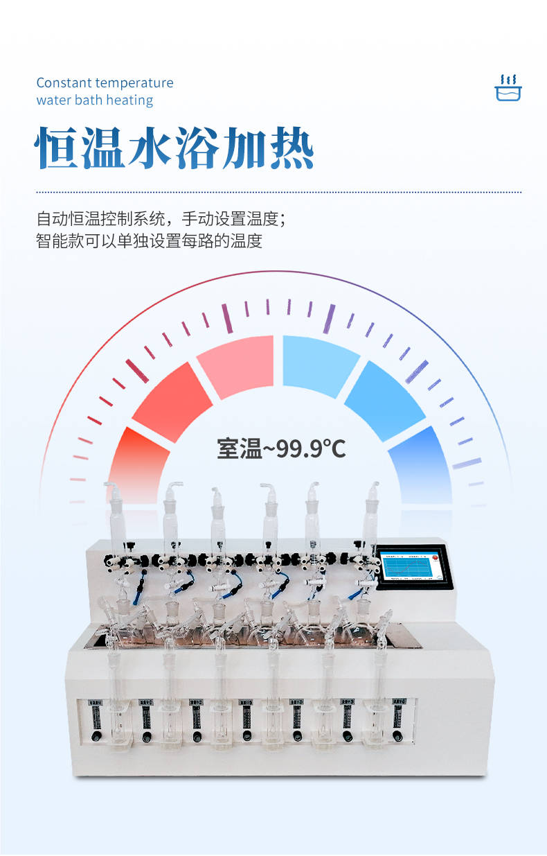 3、恒温水浴加热,具有快速自动恒温控制系统,加热温度可以手动设定。