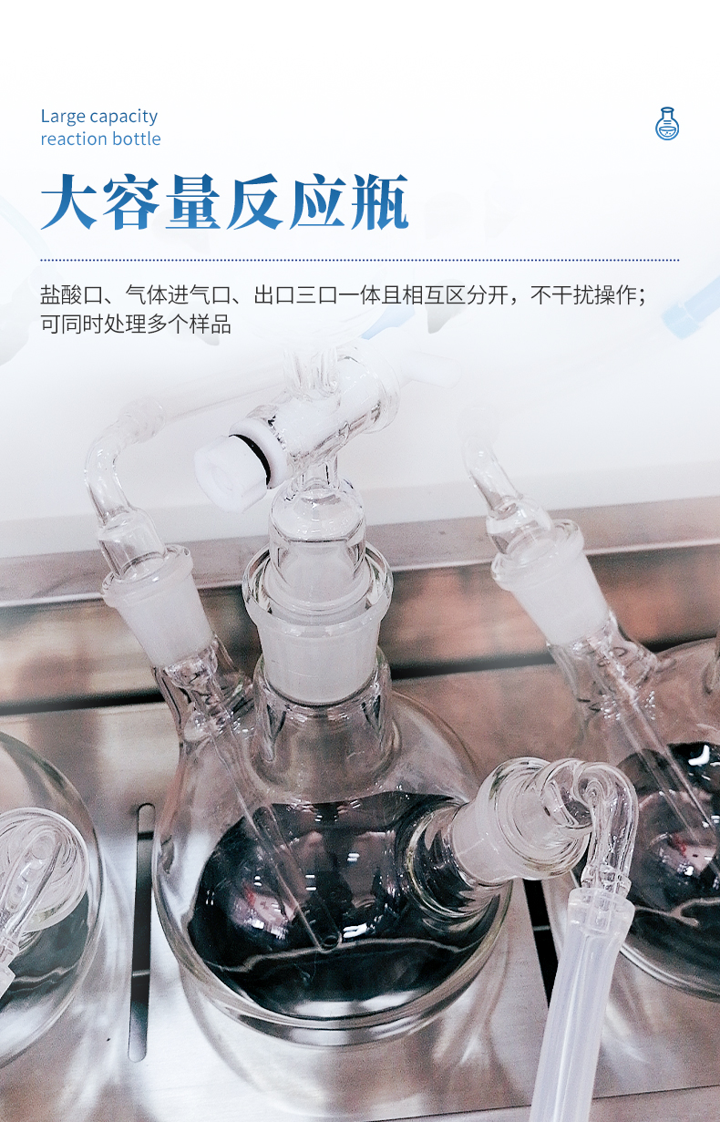 5.盐酸口、气体进气口、出口三口一体且相互区分开,不干扰操作。