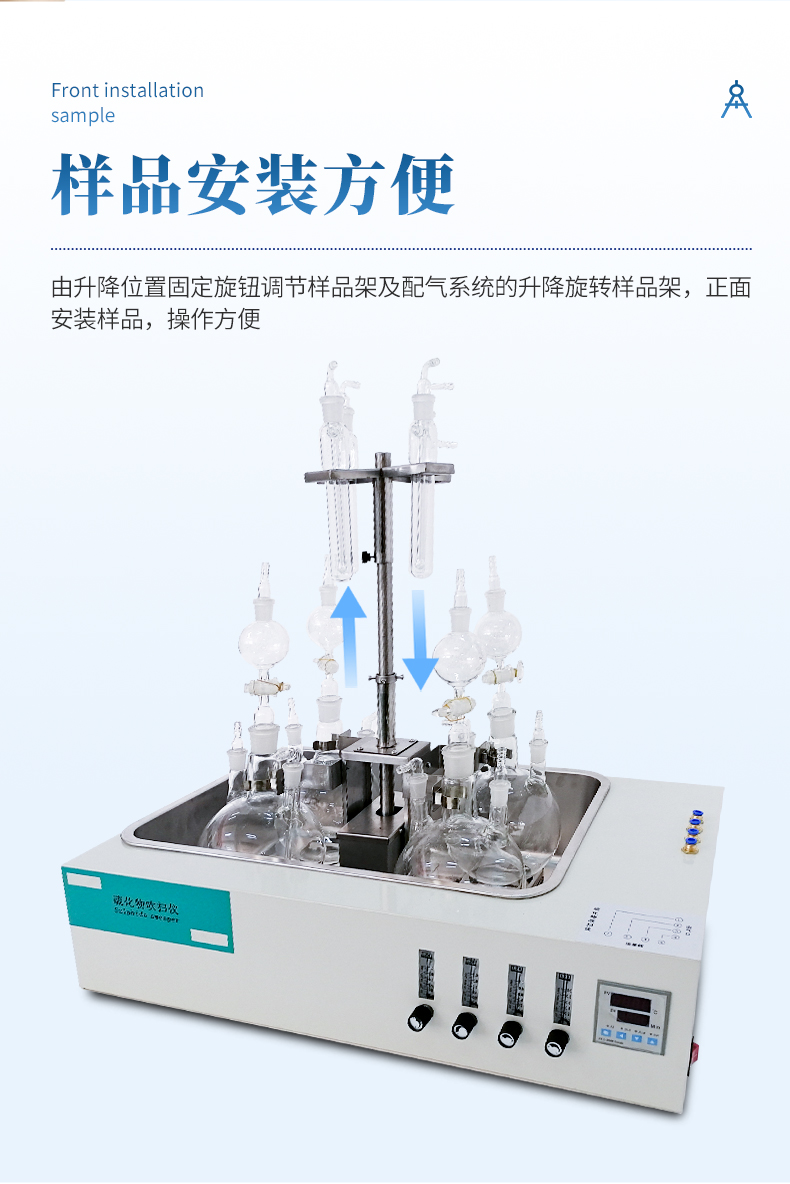 4.由升降位置固定旋钮调节样品架及配气系统,旋转样品架的升降,正面安装样品,操作方便。