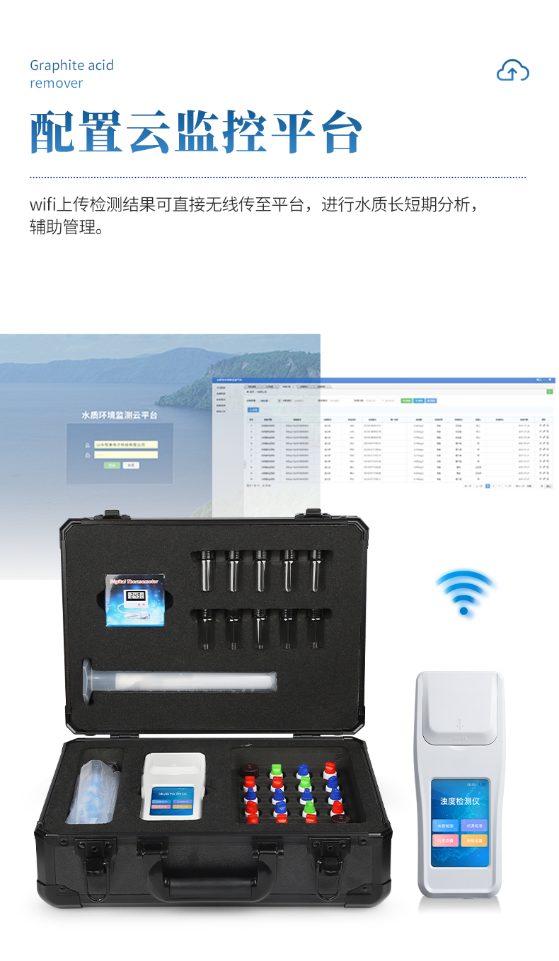 ②配置云监控平台,检测结果可直接无线传至平台,进行水质长短期分析,辅助管理。
