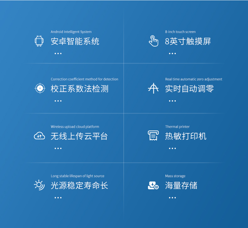 2)使用主流安卓7.1系统加8寸彩色大屏模式进行仪器操作,通过触屏即可进行仪器所有操作,方便快捷,像操作手机一样轻松上手;