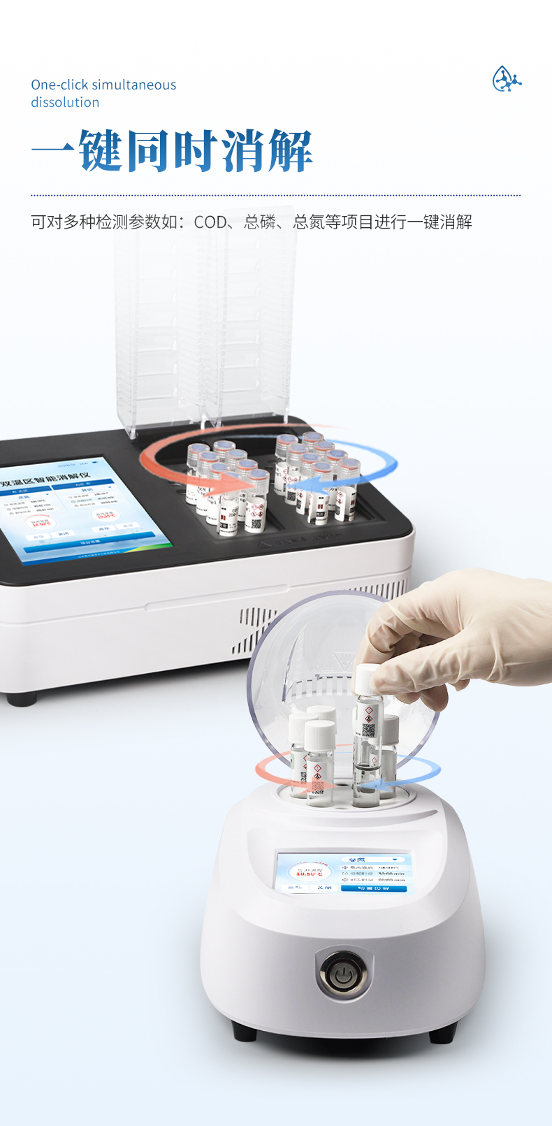 2、具有2个独立加热温区,可同时或分别消解2种指标不同温度的水样;