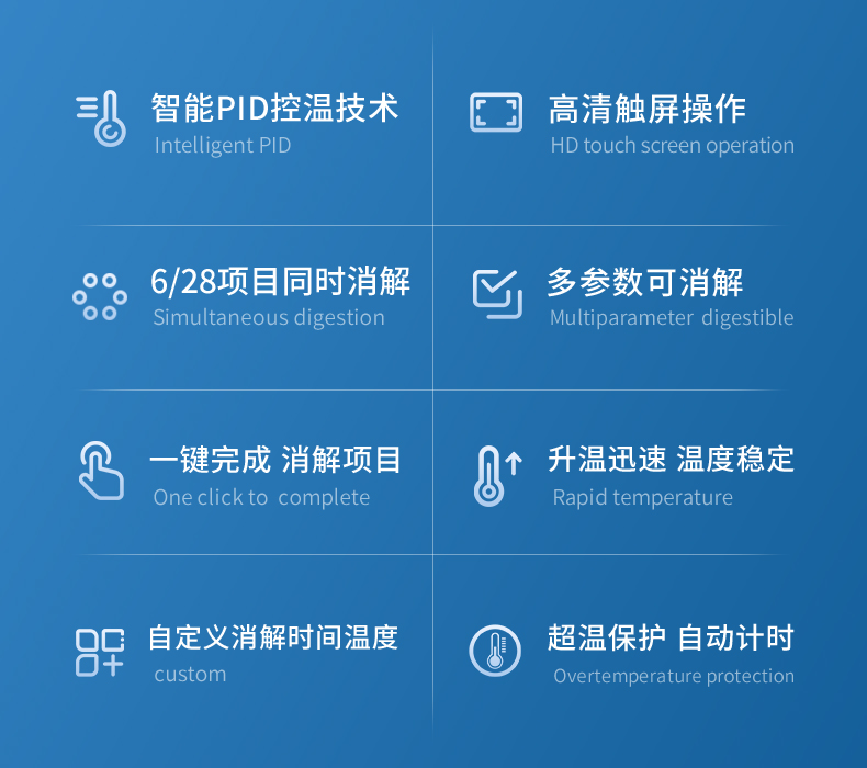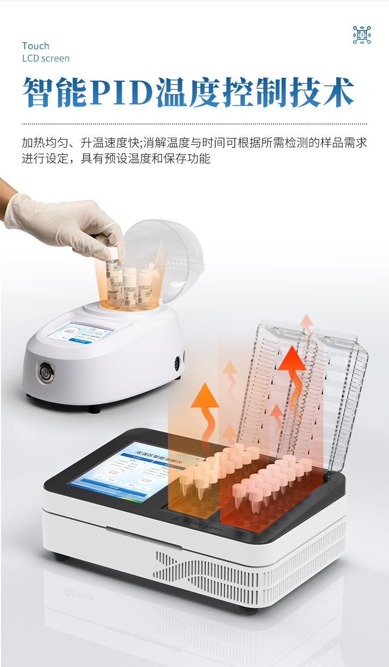 智能双温区消解仪是我司独立自主研发的一款双温区控制消解系统,每个温区独立工作,互不干涉,采用智能PID精密算法具有升温速度快、控温准确、温度均匀等特点;适用于水质检测COD、总磷、总氮、总铬等项目的加热快速消解。