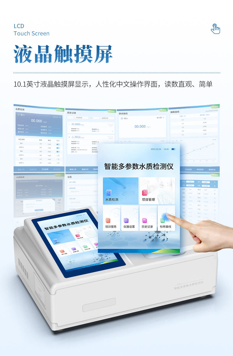 2、10.1英寸液晶触摸屏显示,人性化中文操作界面,读数直观、简单。