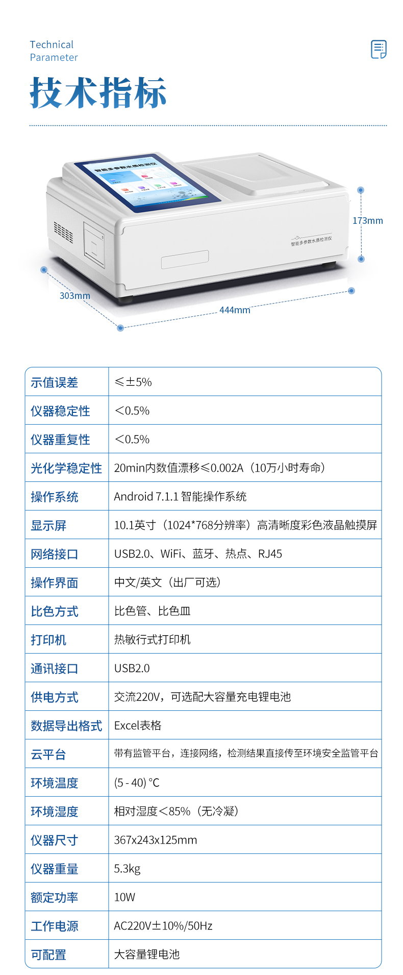 仪器重量:5.3kg;