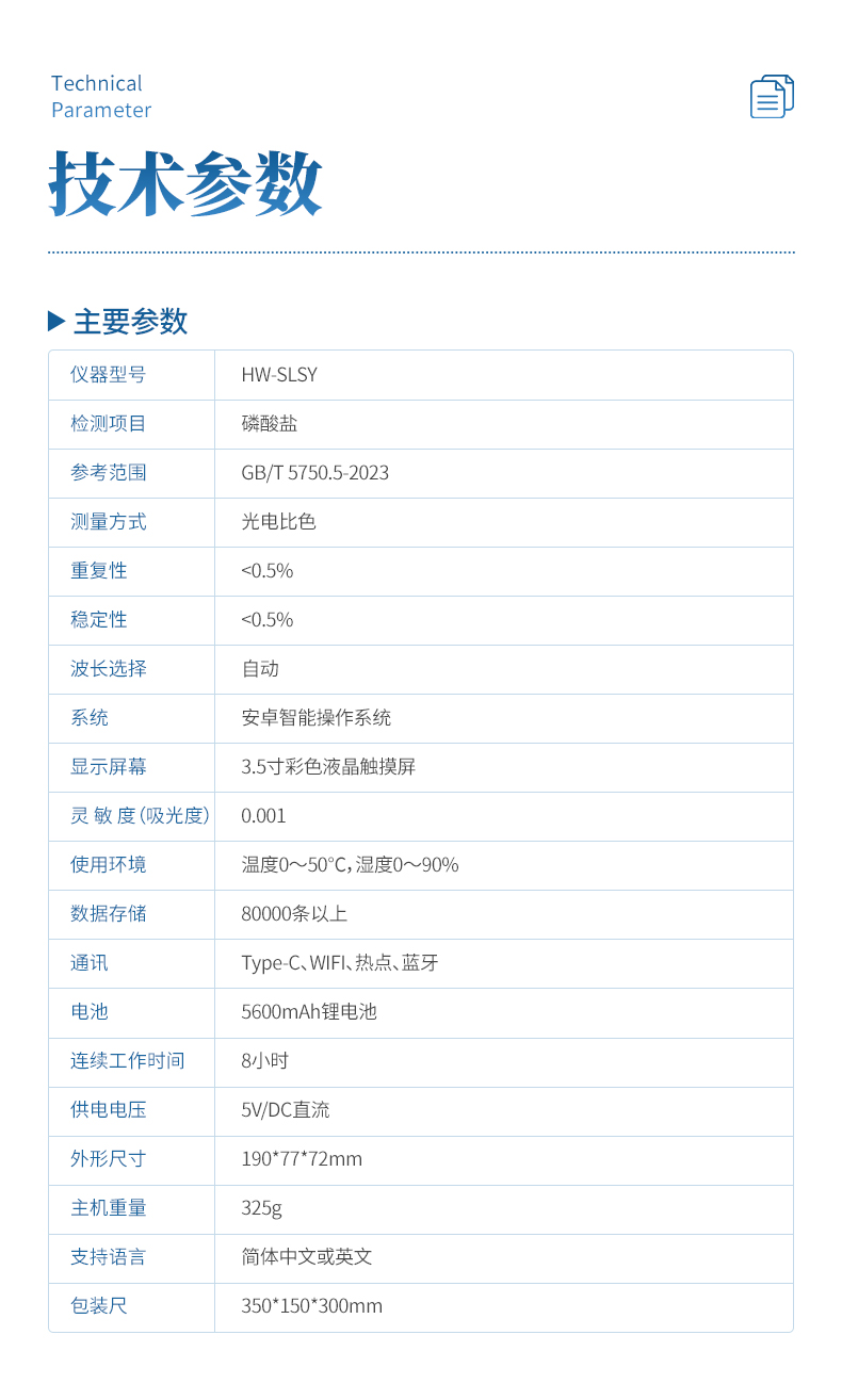 水质磷酸盐检测仪是一款适用于工业污水、水产养殖、河流监测、游泳场馆等领域的检测仪,配合快速显色检测试剂,可“快速、简单、准确、稳定”进行测量,拥有精美的外观造型,简单的操作界面,准确的检测系统,帮助用户获得精细的数据,可更准确、有效的分析水体状况,提前预防养殖风险,及时避免损失。